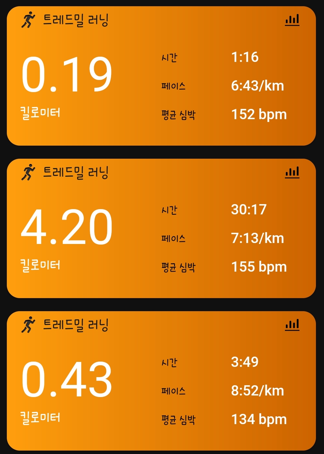 * 트레드밀과 가민과의 거리가 많이 다릅니다.