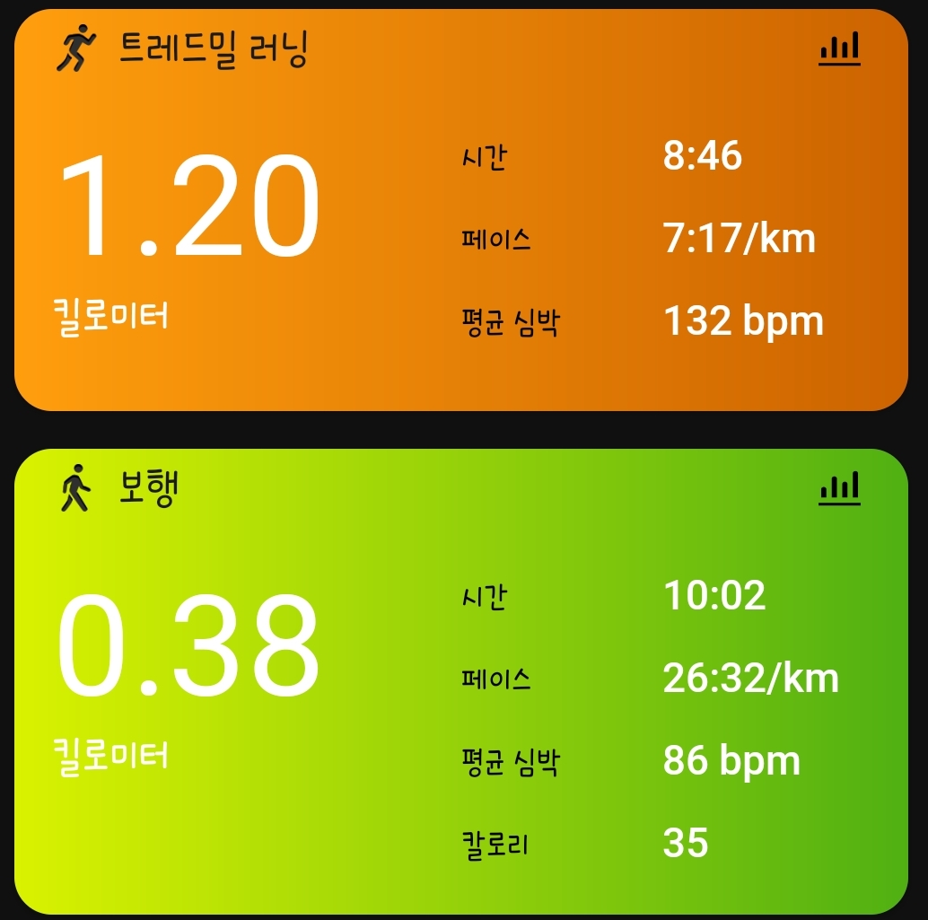 트레드밀이 더 많이 나와요. 아무래도 GPS가 없어서 가민이 적게 기록이 됩니다.