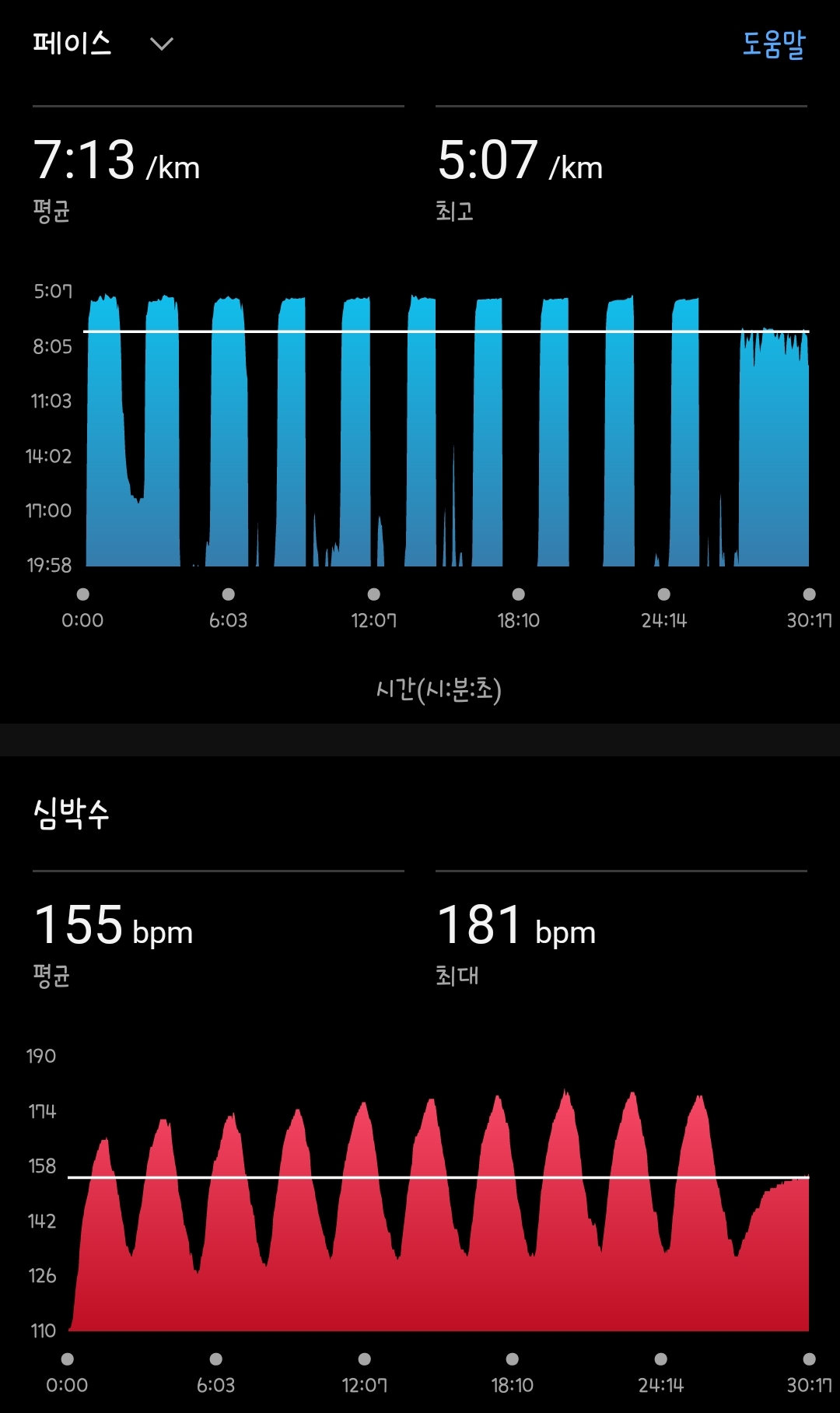 오늘의 운동은 고민 끝에 (10km 지속주와 300M 인터벌*20)
