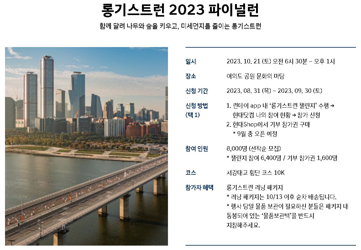 롱기스트런 2023 파이널런이 있다는 뉴스를 보고, 저도 함께 달려보기 위해 신청하였습니다.