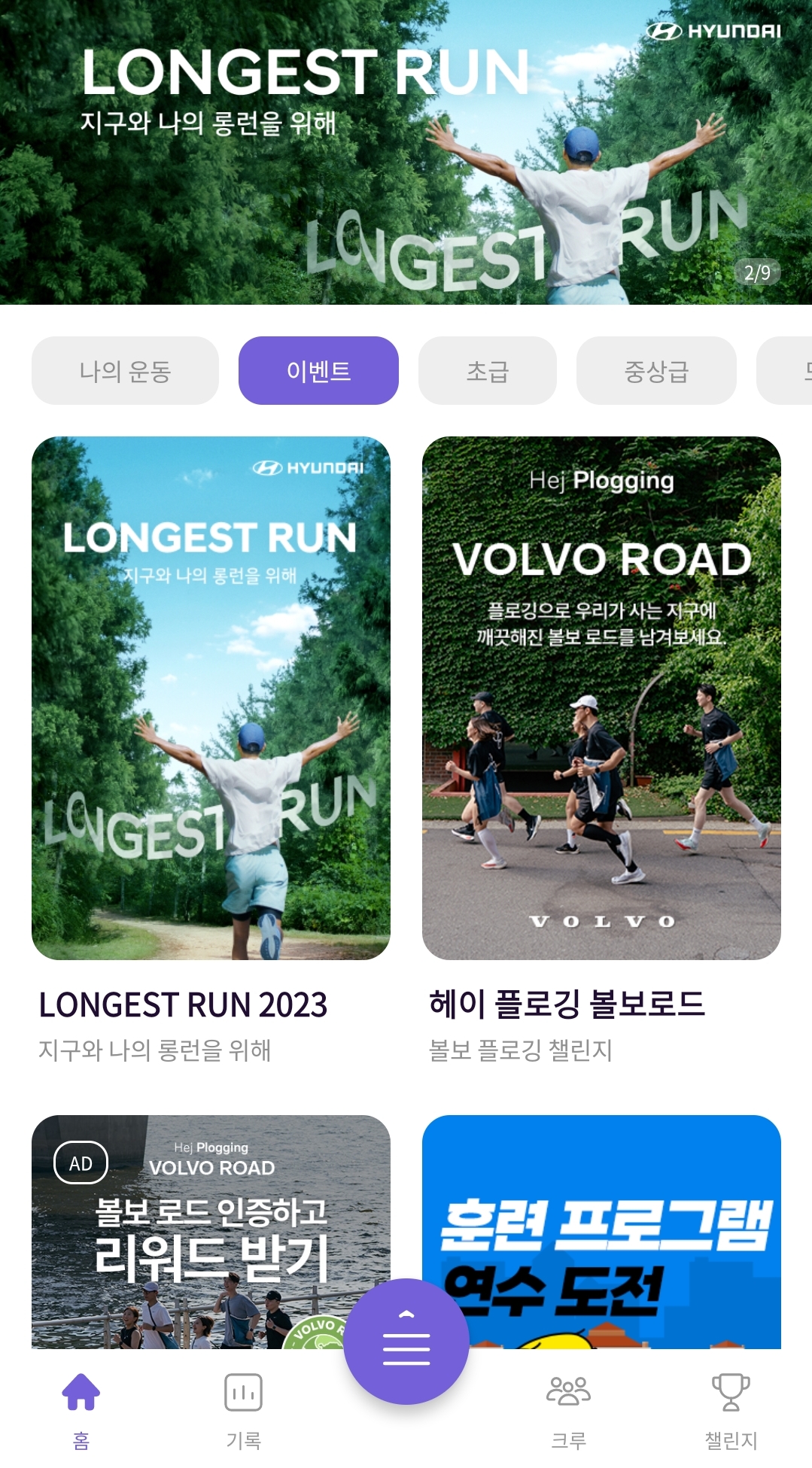 첫 화면에 보면 "LONGEST RUN 2023" 화면이 보입니다.
