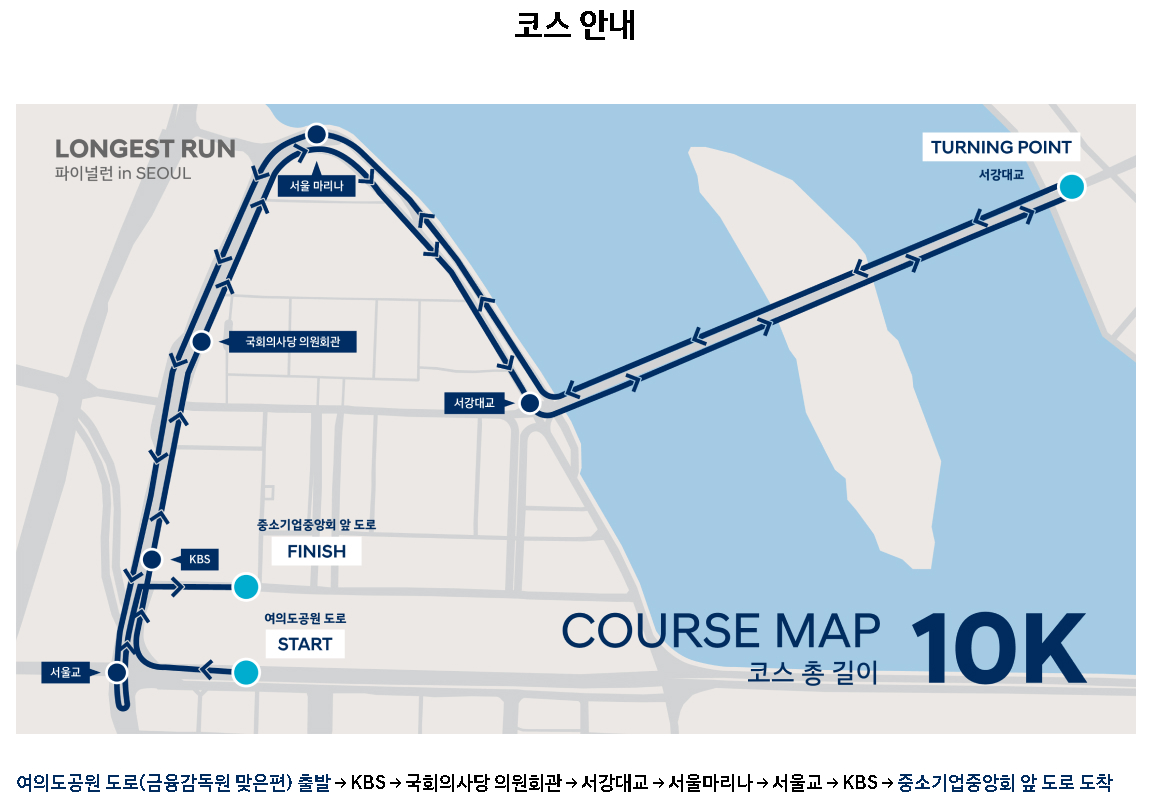 2023년 10월 21일 토요일 여의도 공원 도로에서 시작해서 서강대교를 뛰고 오는 10km 코스입니다.