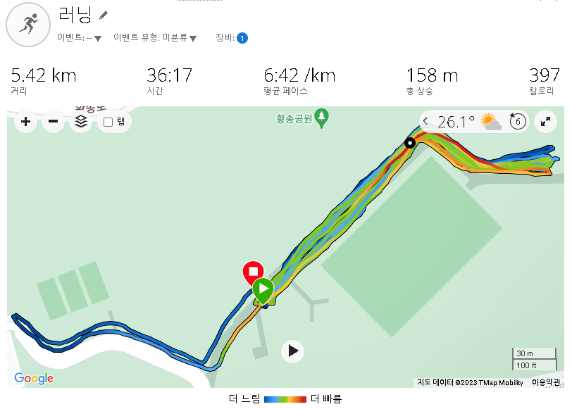 오늘 쉬는 것보다는 가볍게 조깅을 하기로 하고, 퇴근하고 황송공원에 올라갑니다.