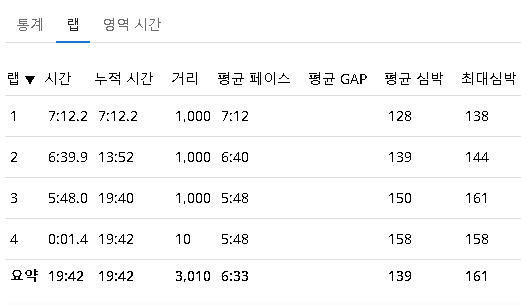 3000m 조깅