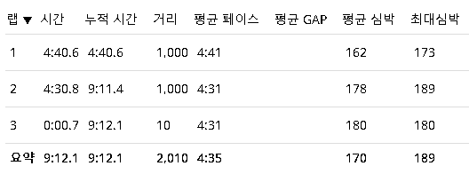 목표는 4분 48초이지만 2000미터만 뛰다 보니, 몸이 더 가벼워진 느낌으로