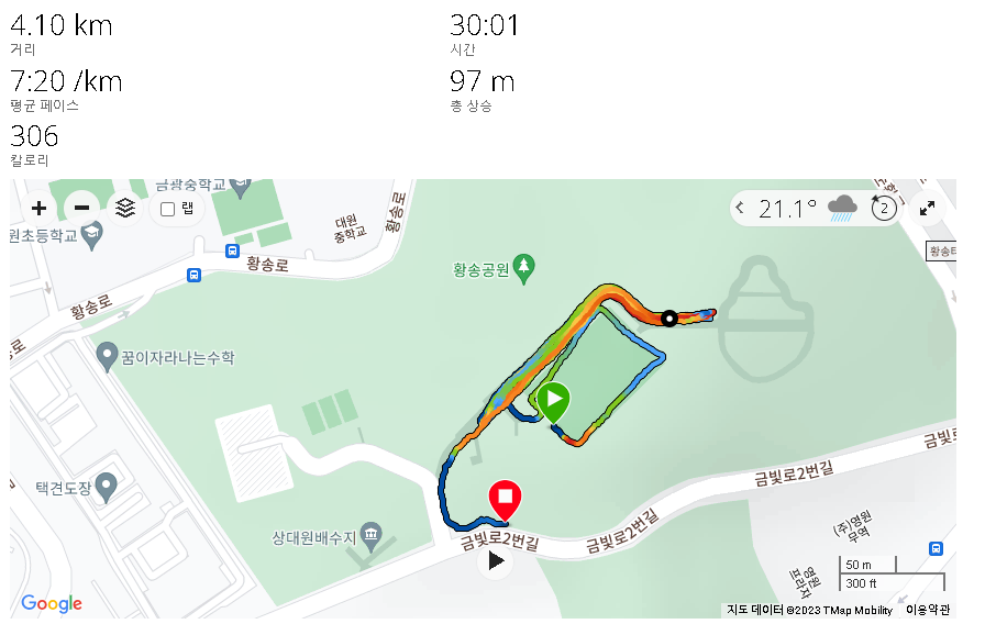 가볍게 내린 비와 함께 정말 가볍게 30분간 뛰어줍니다.