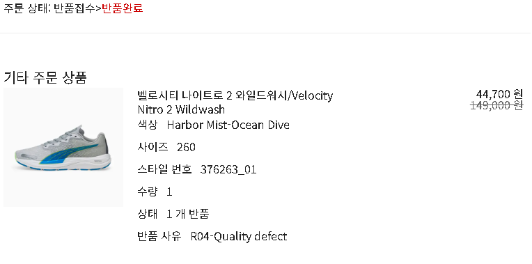 저렴한 가격에 푸마 러닝화를 신어볼 기회였는데, 안타까운 마음으로 푸마 벨로시티 나이트로 2를 반품하였습니다.