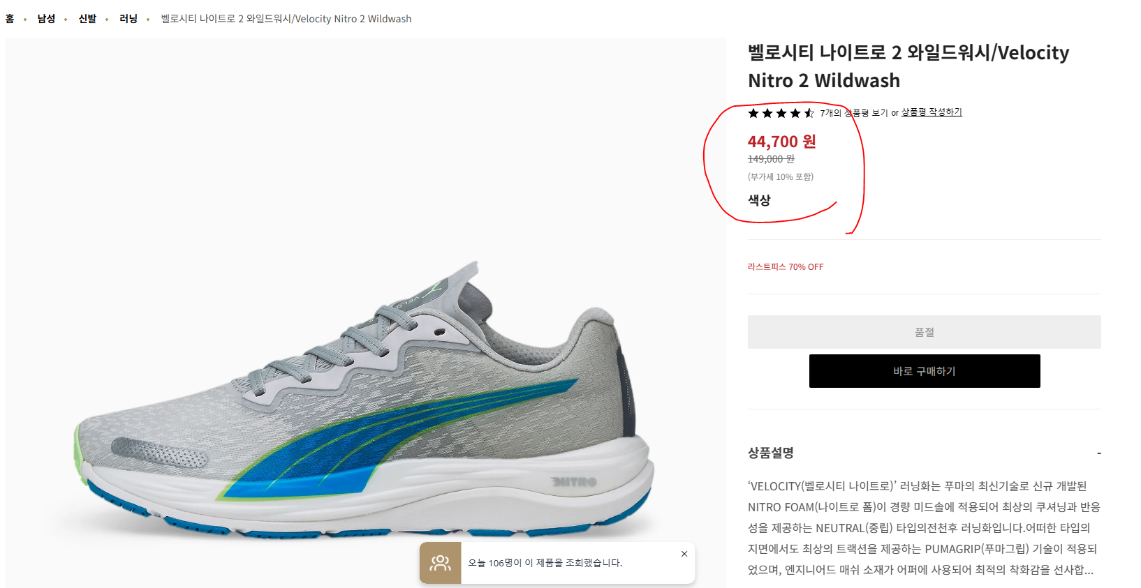 푸마 공식 홈페이지에서 라스트피스 할인을 해서 들어가 봤습니다.
