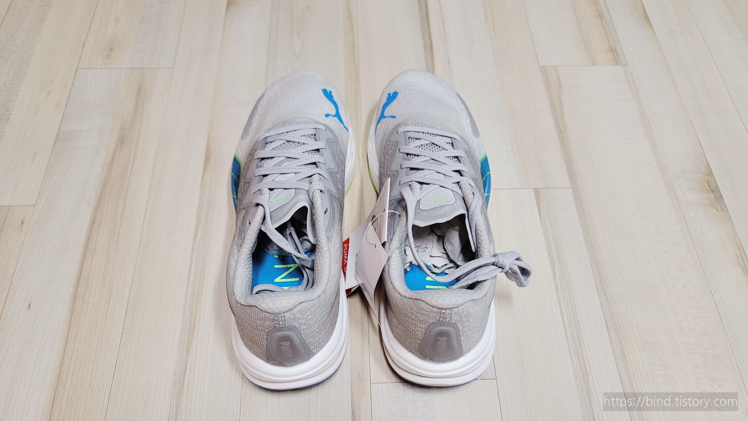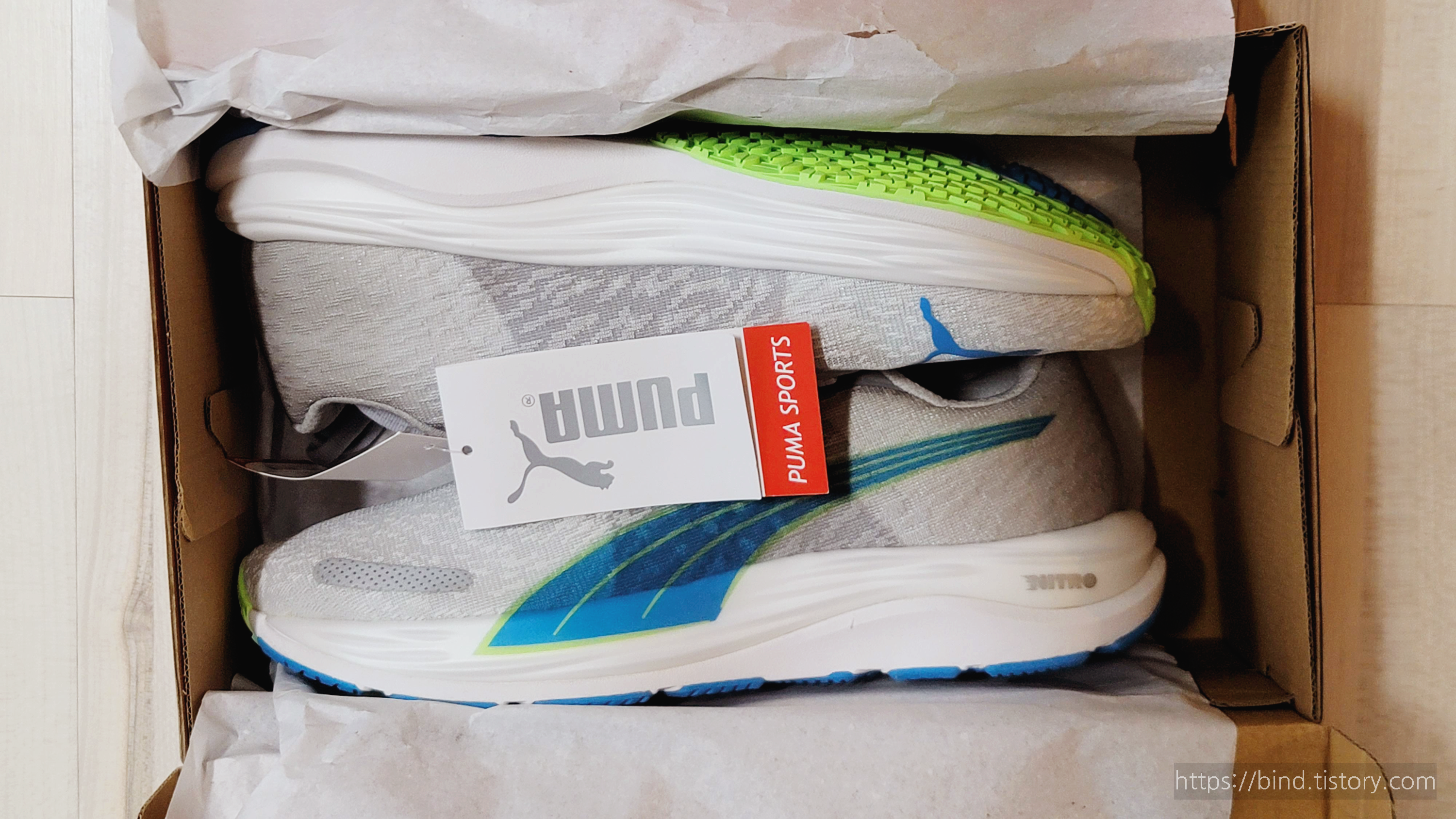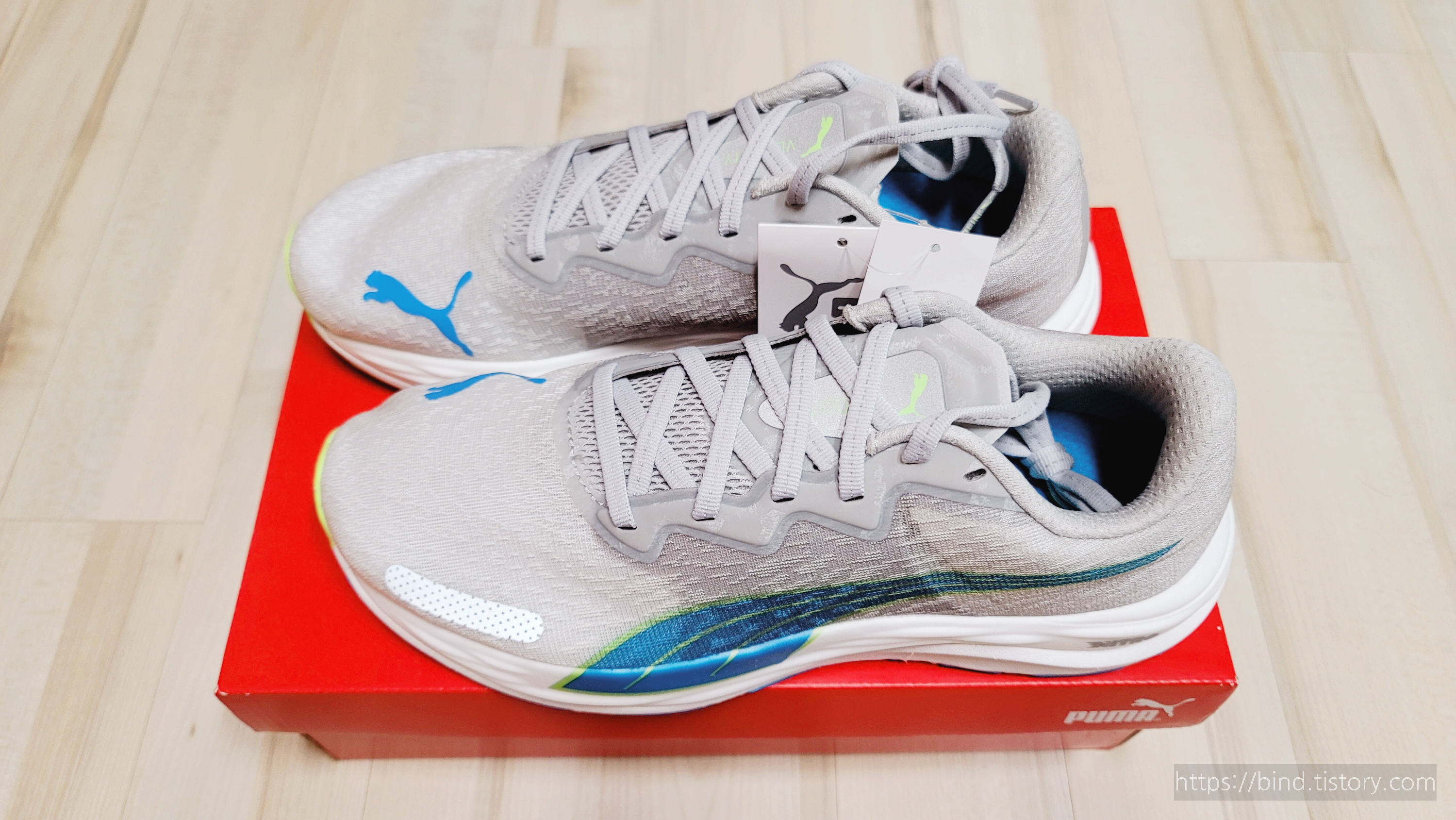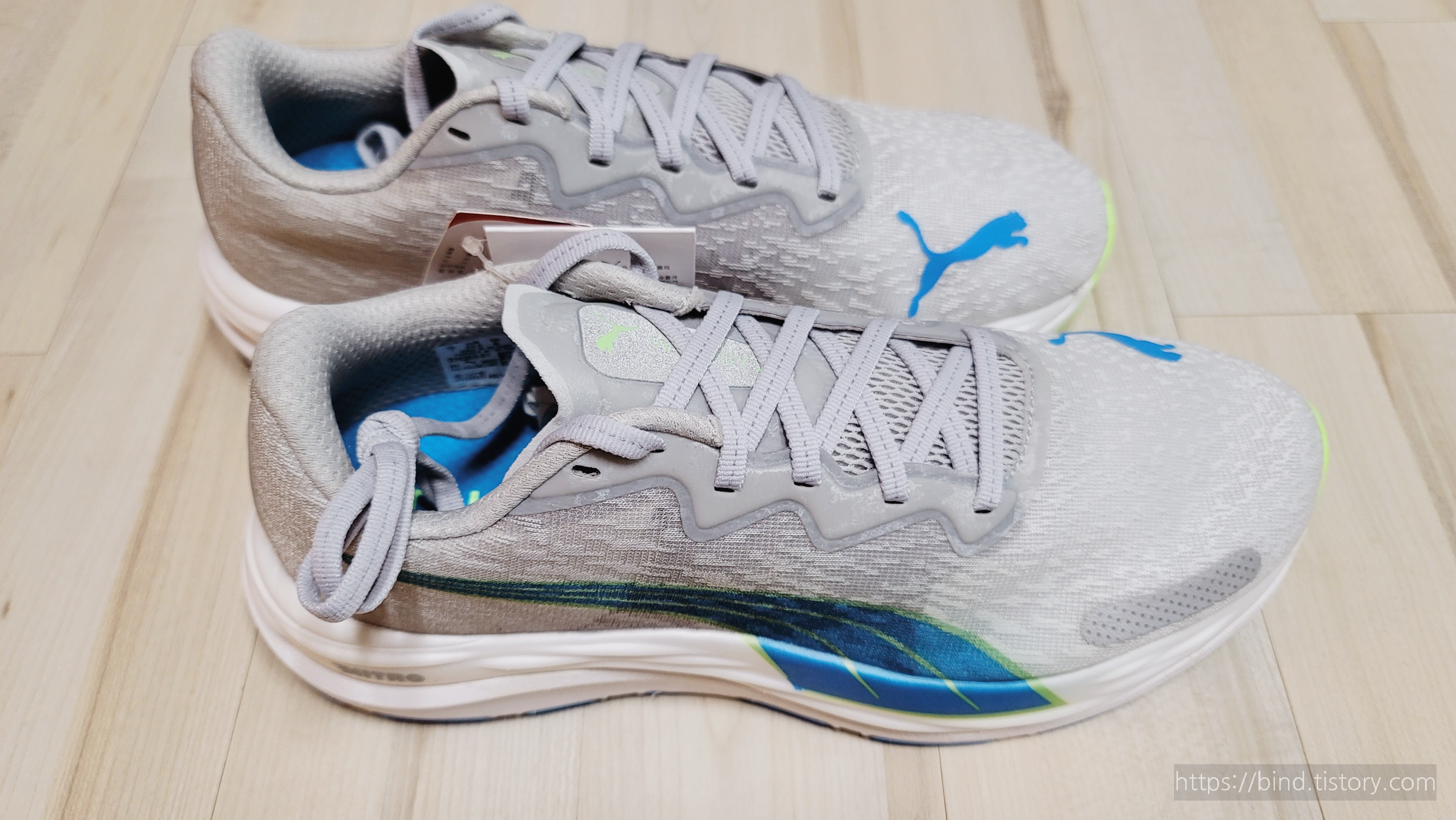 푸마 러닝화 라인이 발볼이 좁다고 하는데, 신기 전에 벨로시티 나이트로 2 러닝화 사진을 찍어봅니다.