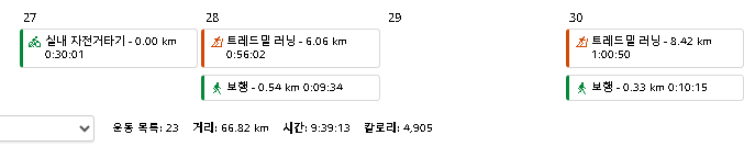 (운동일지를 한번 작성 안하니, 계속 밀리네요. ㅜㅜ)