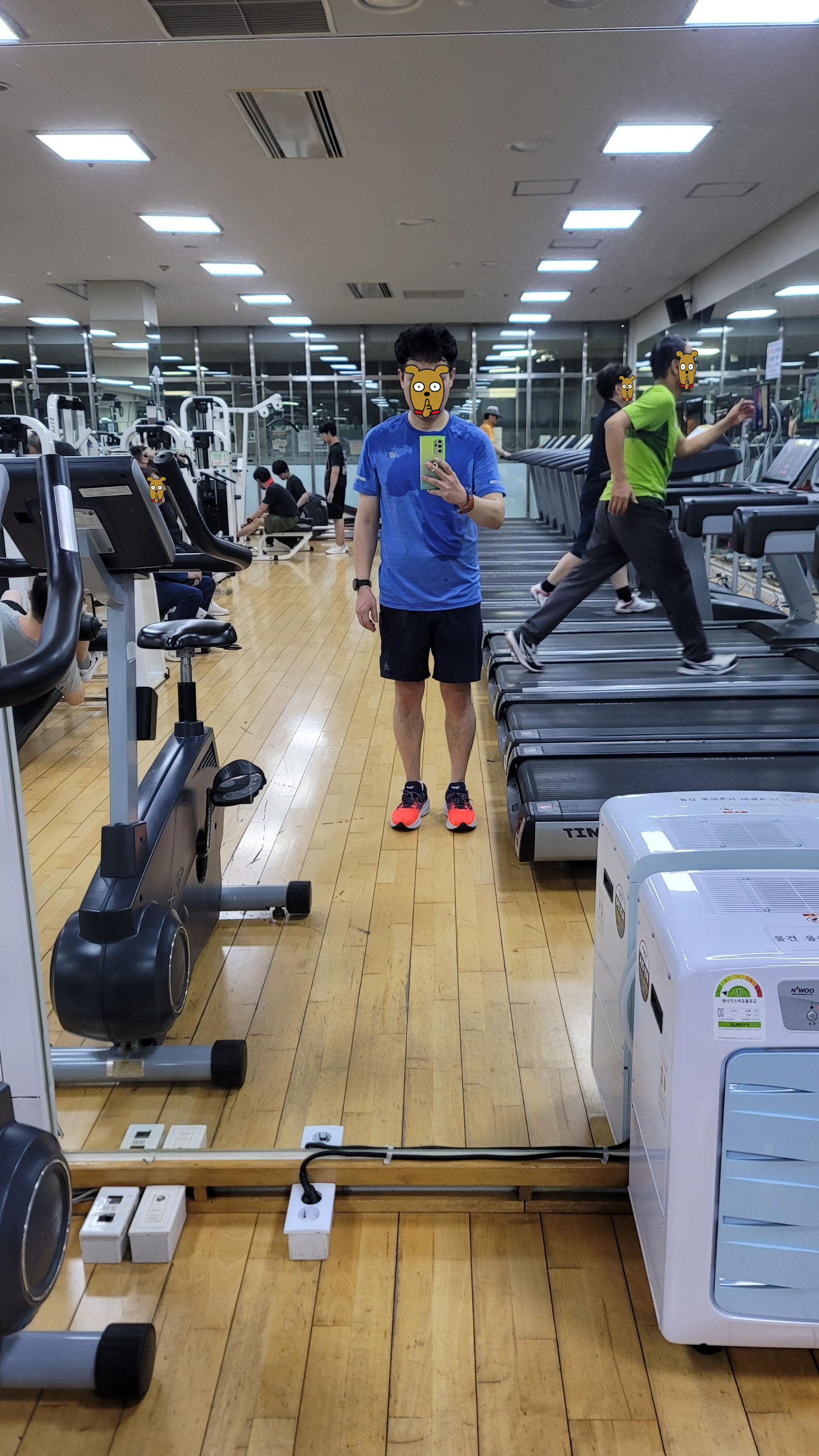 헬스장에서 가볍게 조깅 50분간 뛰어줍니다.