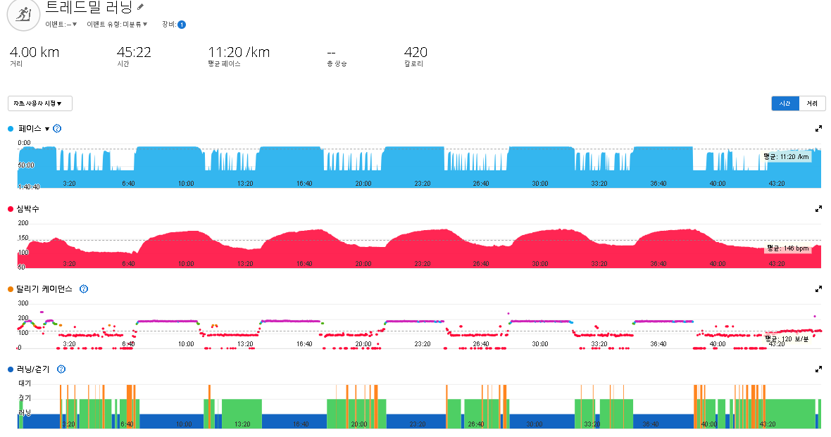 속도 14.2 800미터 / 200미 속도 3 완전 회복 * 총 5회 인터벌
