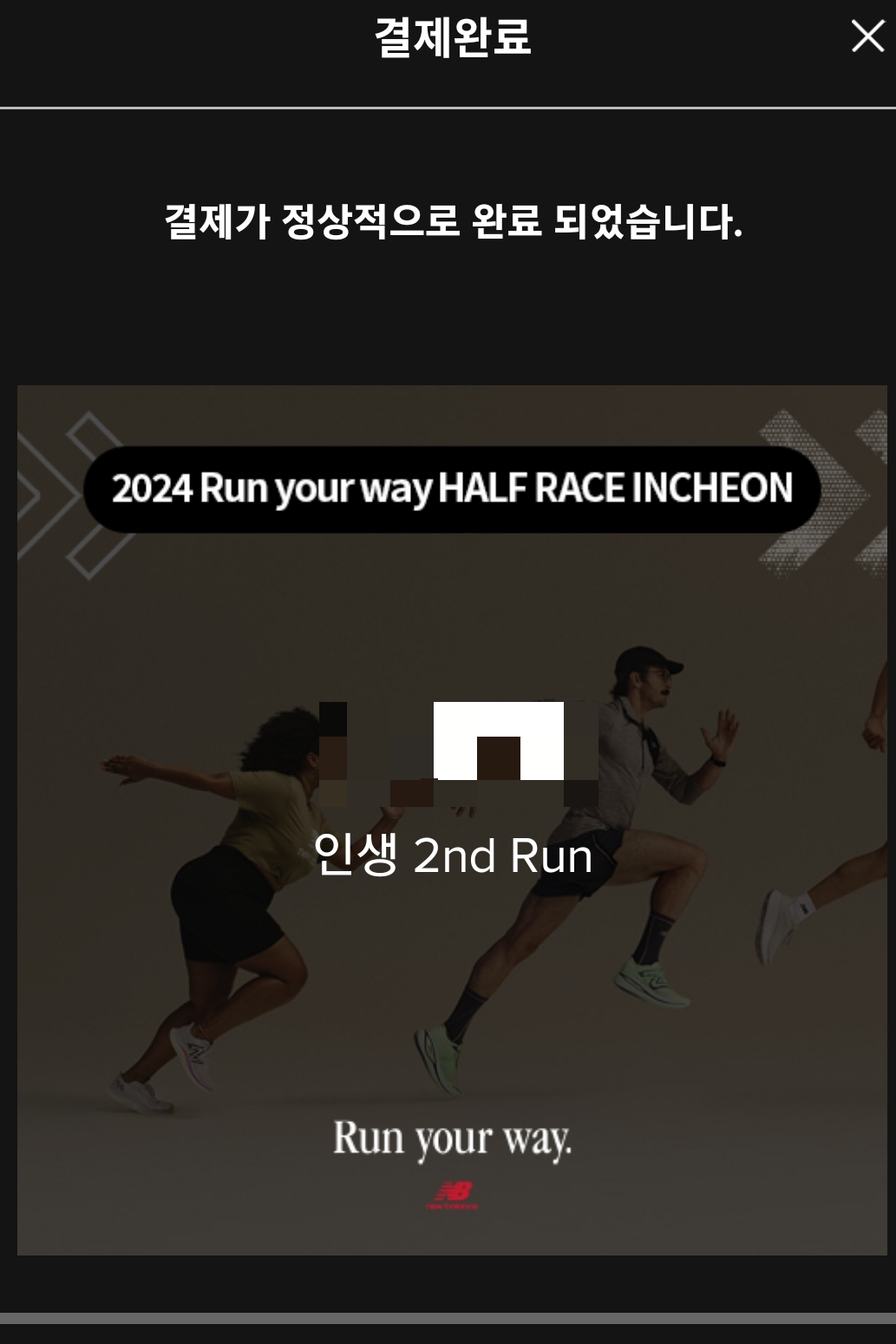그럼에도, 정말 운 좋게 빠르게 결제가 되어, 뉴발란스 2024 런유얼웨이 인천 하프레이스에 참가하게 되었습니다.