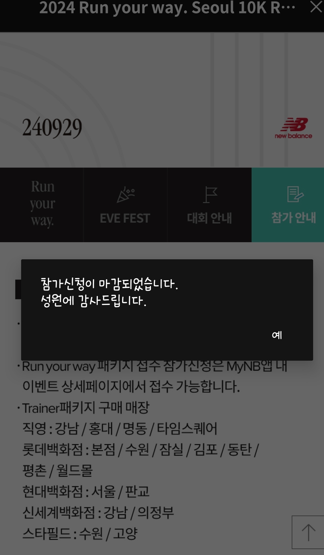 2024 Run your way Seoul 뉴발란스 10K 접수 성공 - 240929