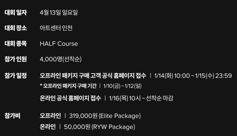 이번주 목요일에 뉴발란스 하프 대회 접수 성공하시길 바랍니다.
