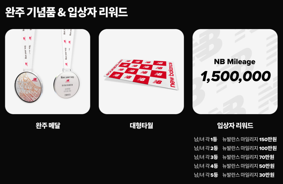 뉴발란스 하프 대회 완주 기념품과 입사장 리워드