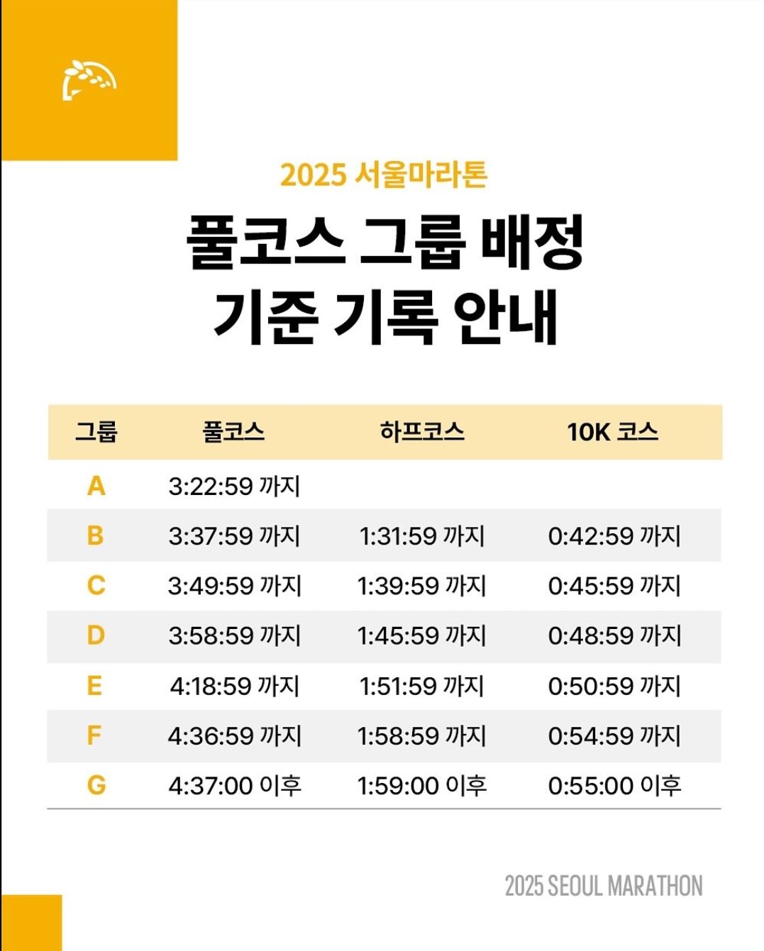 그래서 작년 2024 서울레이스 하프 기록으로 저는 C 그룹이 되었습니다.