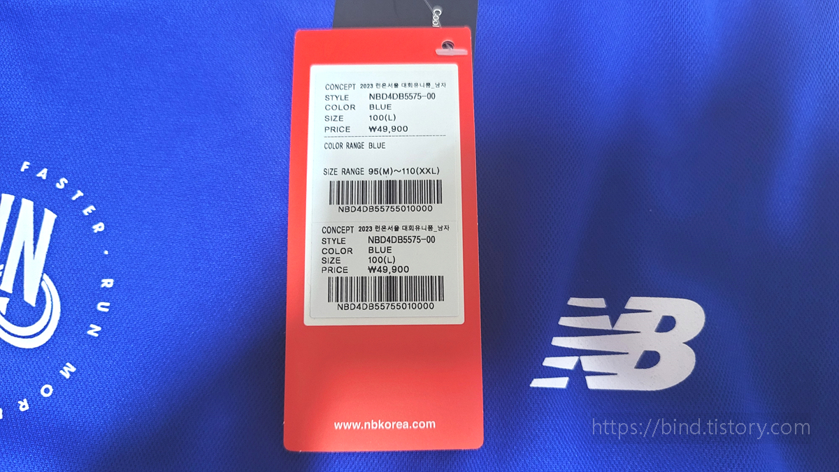 뉴발란스 기념품 티이면서, 런유얼웨이 대회날 입어야 하는 블루 티셔츠