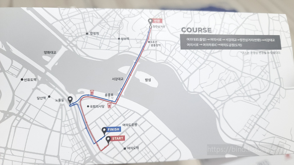 여의대로를 출발하여 → 여의서로 → 서강대교 → 창전삼거리(반환)