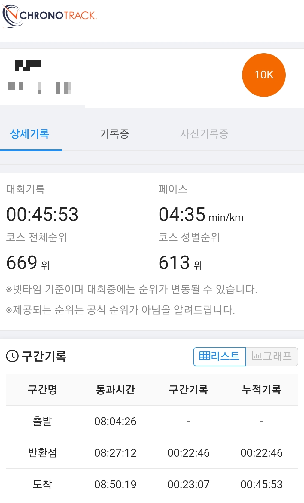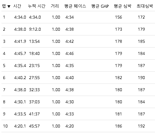 다음 대회에는 4분 30초 안쪽 페이스로 뛰어보려고 합니다.
