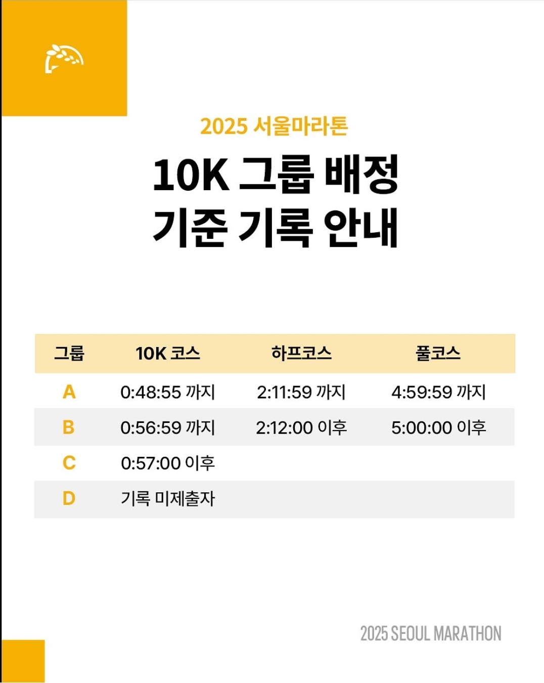 2025 서울 마라톤 그룹 배정 10K